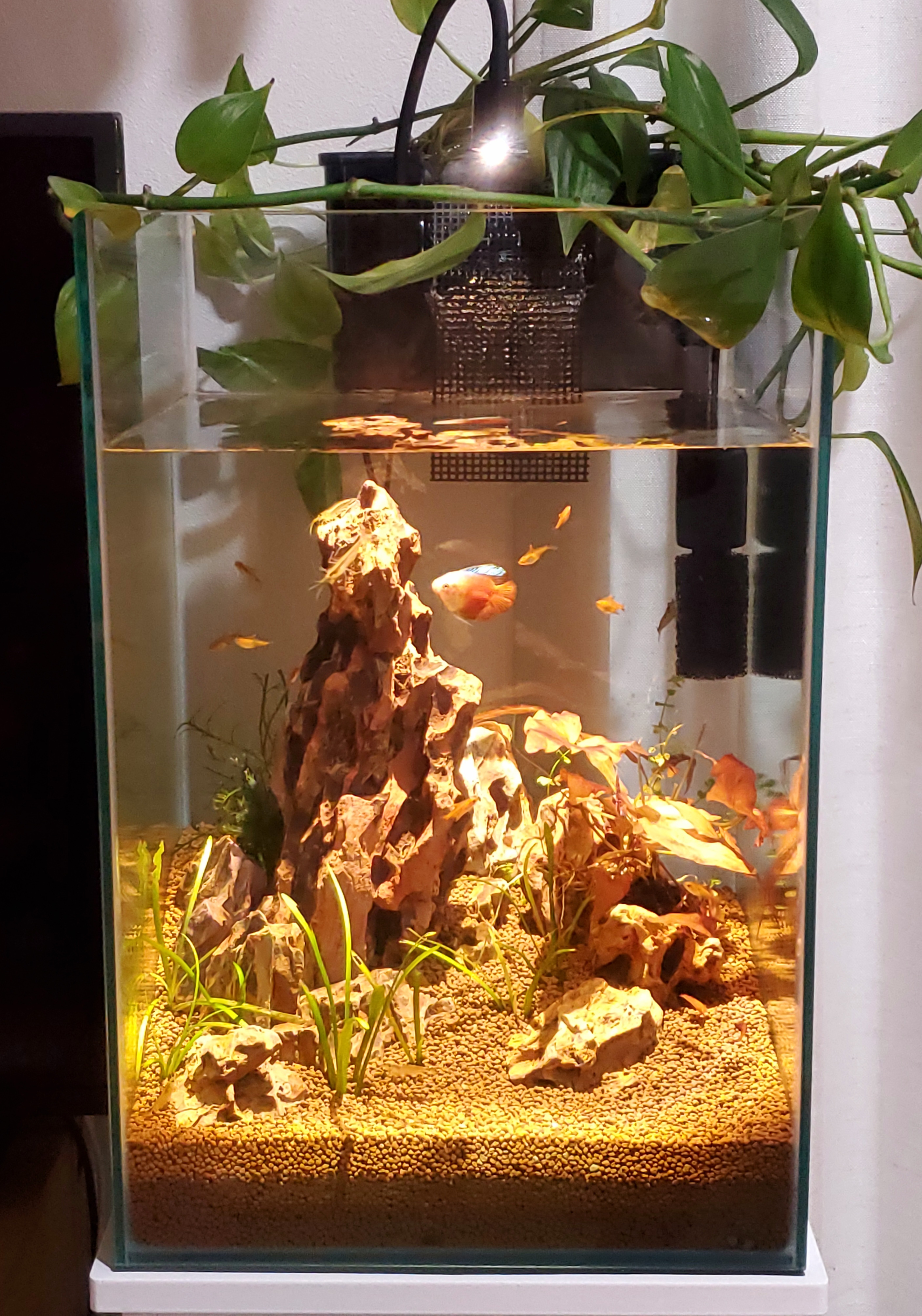 魚種もサンセットドワーフグラミーとレッドテトラで「夕日の赤」にこだわっています。