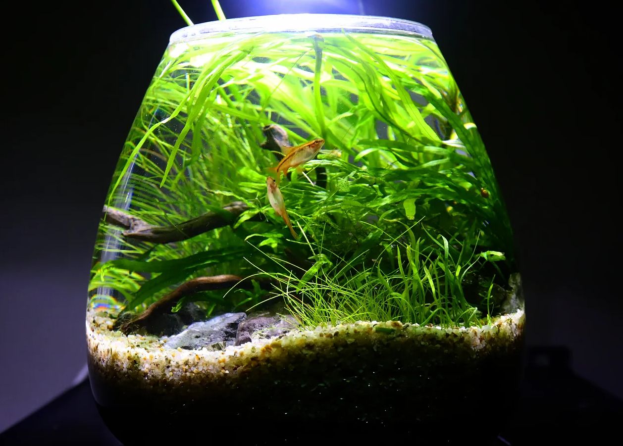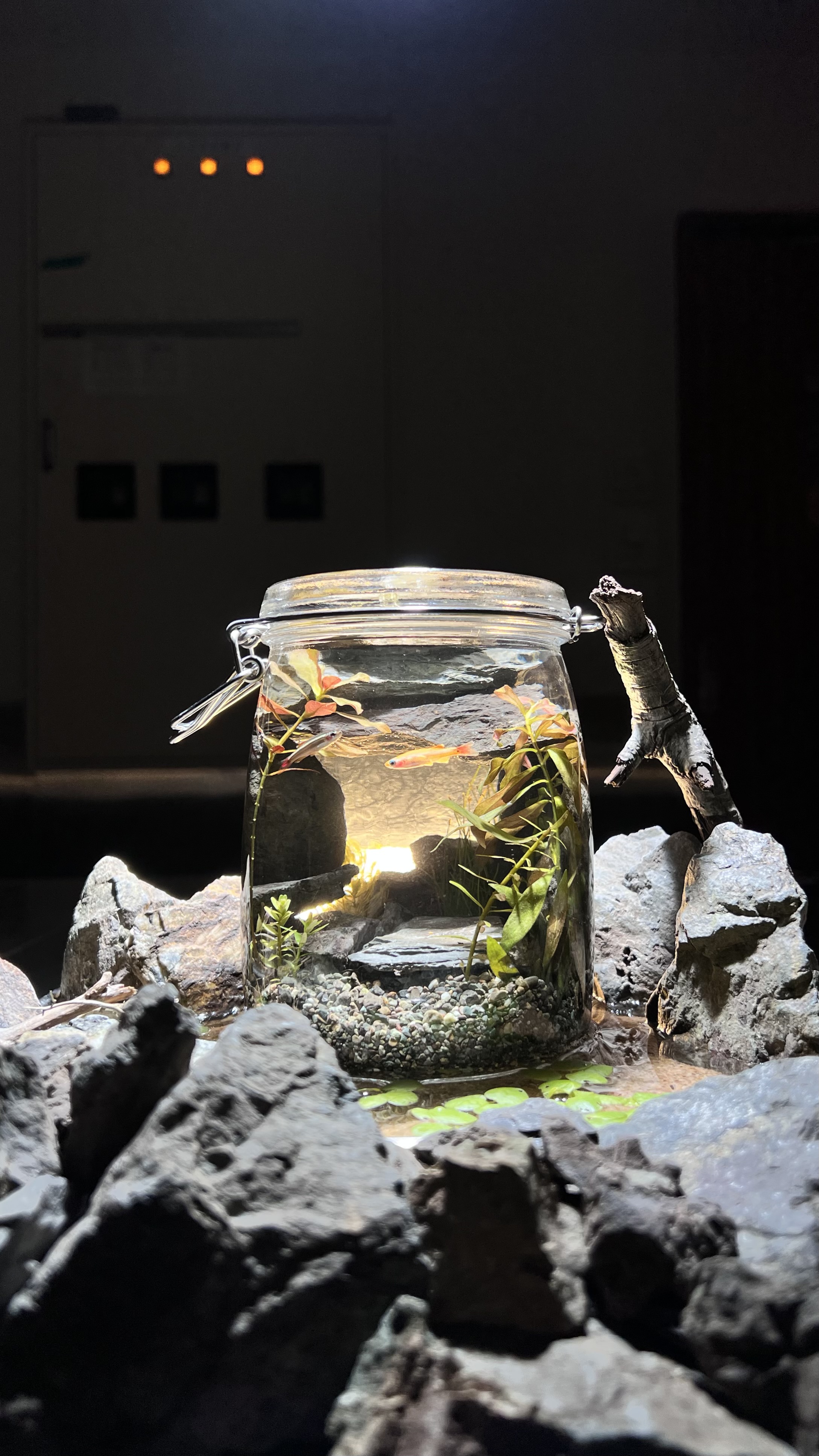 作品コンセプト:魚が水草の間を泳ぎ、時には休む。