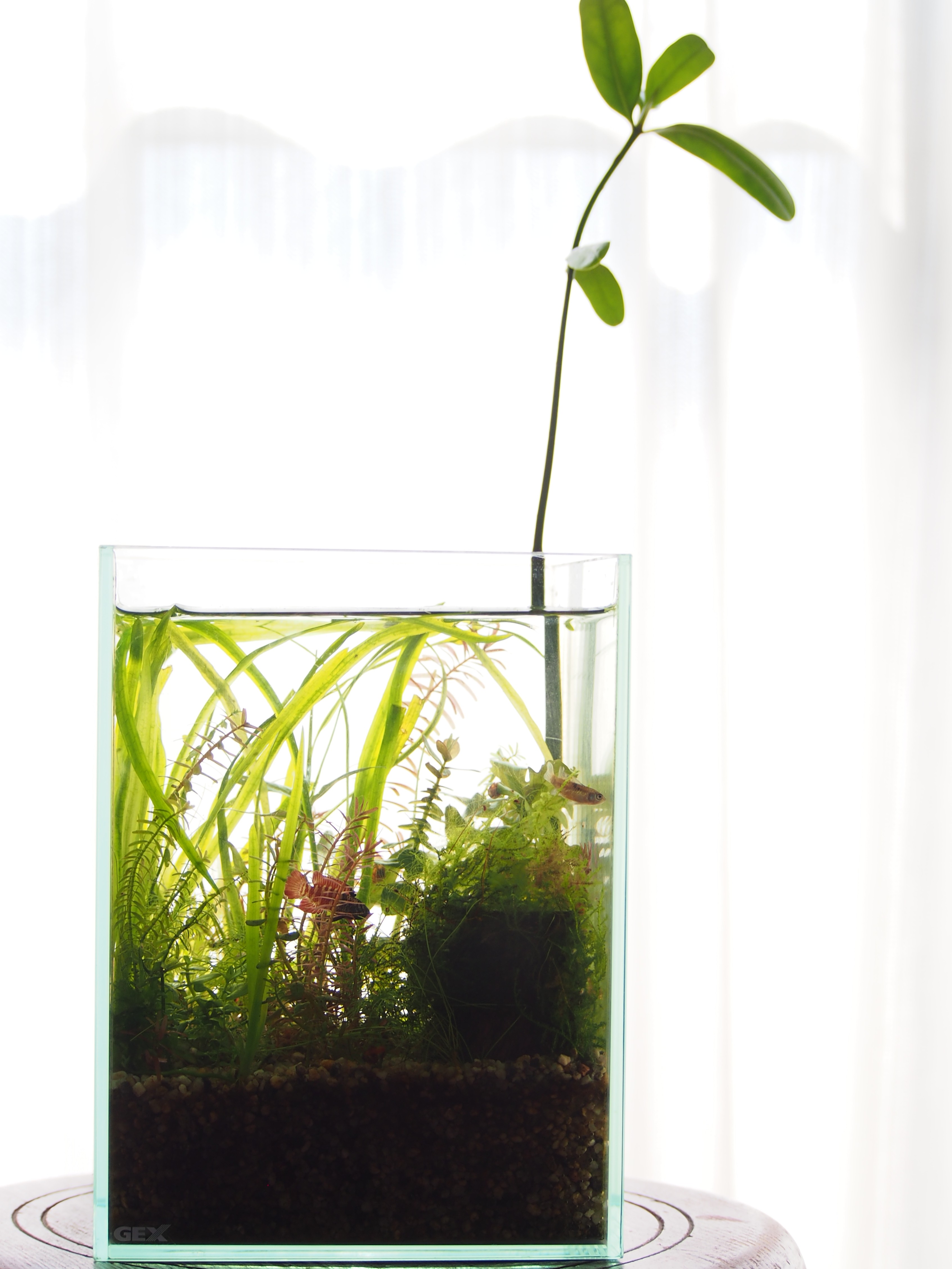 作品コンセプト:リビング設置の幅25cmの小型水槽です。